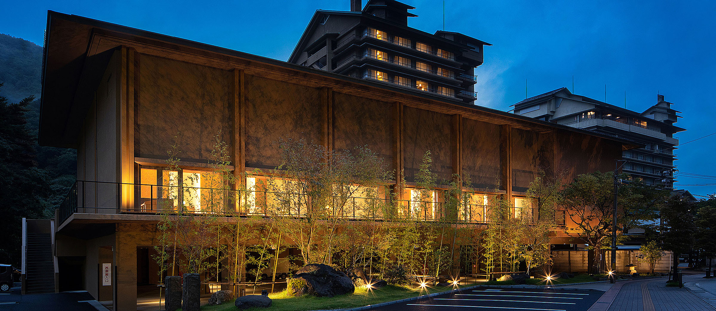 - 庭園露天風呂、サウナ風呂、展望ひのき大浴場